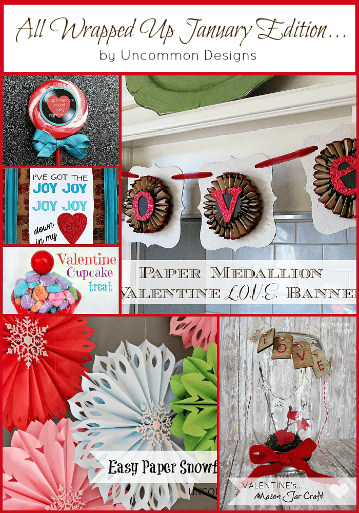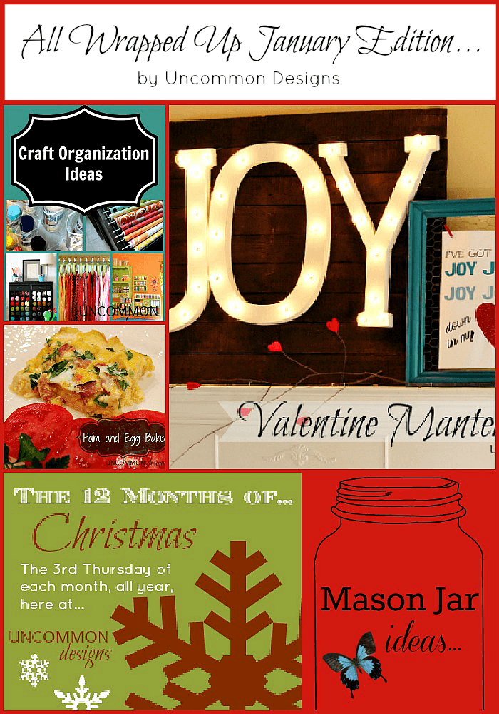 Seriously? January is over? Where did it go? We feel like we just got past Christmas! Trish and I have been busy this month and wanted to give you a little recap of all of our January craft projects in our All Wrapped Up … January Edition!
