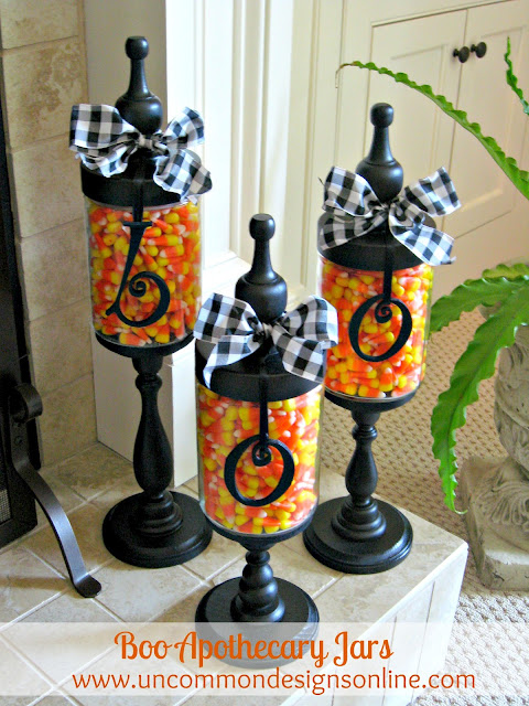 When we saw the fall apothecary jars over at Shanty 2 Chic , we were inspired to create our own! Our Boo Apothecary Jars turned out just too cute!