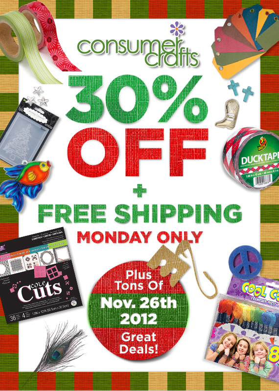So when you hop on the computer on Cyber Monday { November 26th } stop by Consumer Crafts and snatch up 30% off and Free Shipping! They also have some incredible deals for Black Friday! This will be a great time to shop for that crafter in your life….and a little for yourself too!