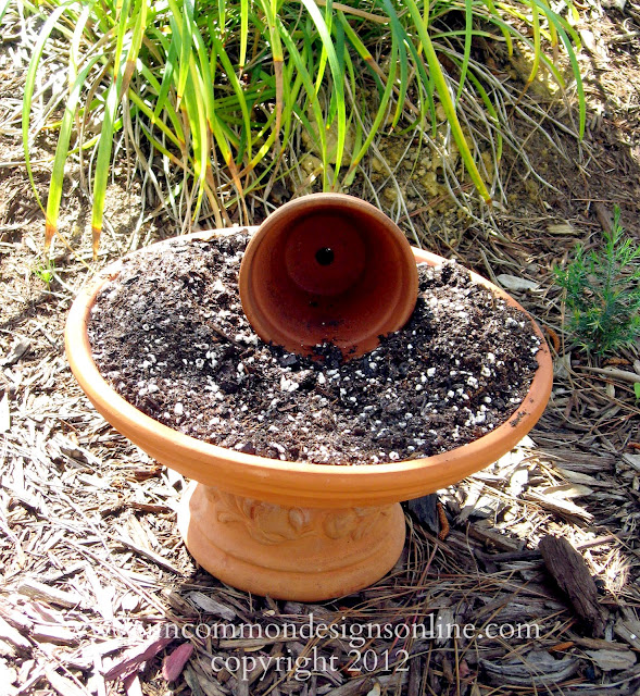 **Hint: Have a spray bottle of plain water nearby to wet the dirt in order to both shape it and get it to stay in place! Also, you see that my saucer is elevated..I actually made a cakestand, I will be back another time with that tutorial!**