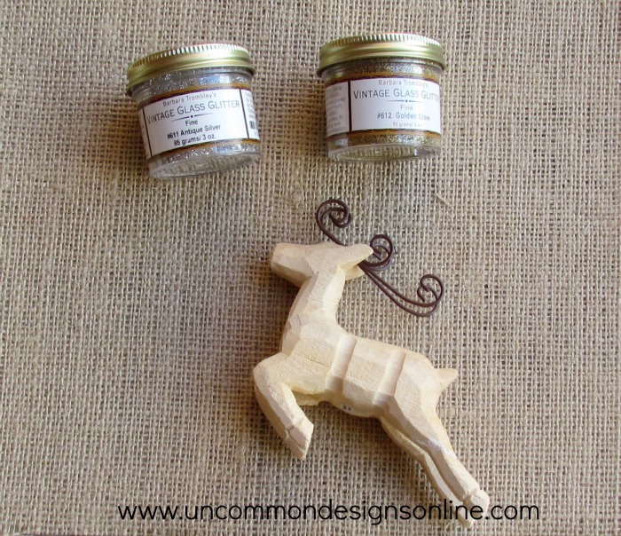 Last year Bonnie and I scooped up a few of these reindeer at Michaels after Christmas for next to nothing. I knew that I wanted to glam them up with a little glitter and the vintage glass glitter seemed like the perfect solution!