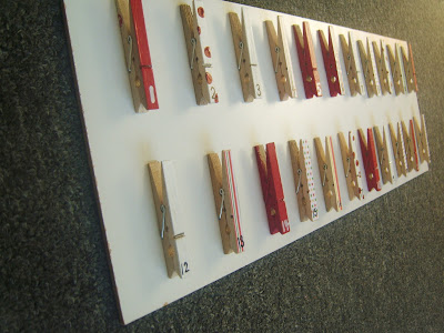 Rhiannon @ My Handcrafted Home constructed this amazing advent! Love the adorable painted clothespins!