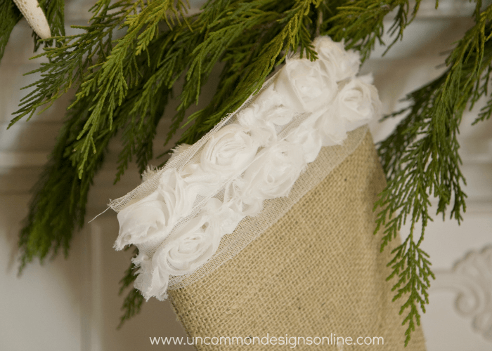 The stockings are something that have been on my to-do list for three, yes three years. I can’t tell you how good it feels to finally have them hung. I was going to do ruffled, but when I saw this trim at Hobby Lobby, I just had to have it!