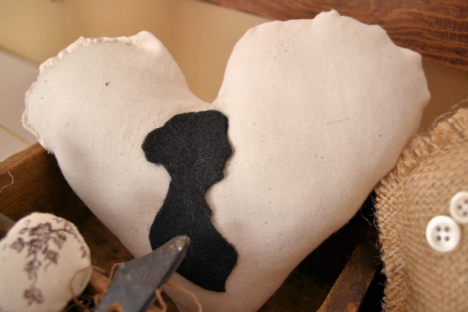 I hand sewed the three hearts. The muslin one with the Jane Austen silhouette is my favorite!