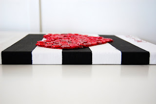 Once that is finished, hot glue your button burlap heart to your canvas.