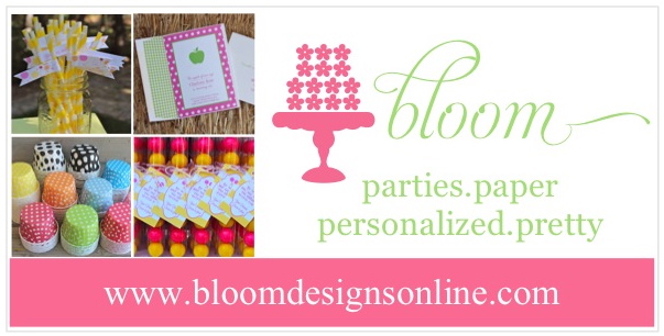 Bloom Designs is all about parties and party supplies. Jenny is the girl behind Bloom Designs. Visit the blog for tons of ideas,inspiration and even a weekly link party. In the ETSY Shop, Bloom Designs Online, you can find adorable items….