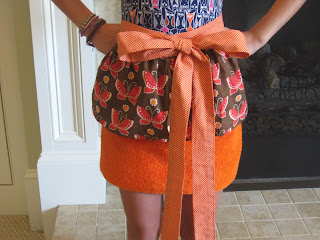 The apron is made from a simple hand towel and a cute butterfly print fabric!!