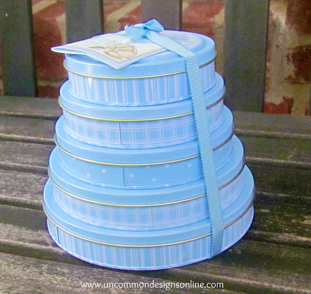 No chocolate in these sweet baby blue tins! There are five tins and each tin represents one year in your child’s life. It comes with all you need to make an impression of your child’s hand print for their first five years of life.