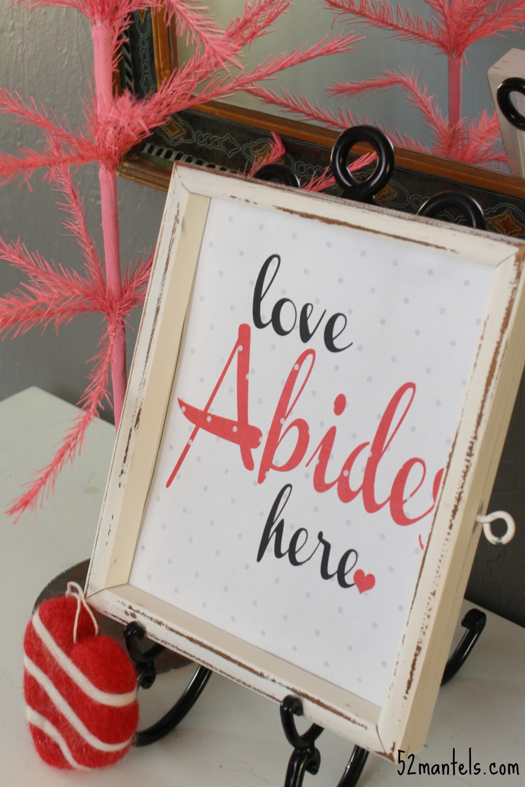 Finally, 52 Mantels was kind enough to share a Love Abides Here printable with us. So sweet!